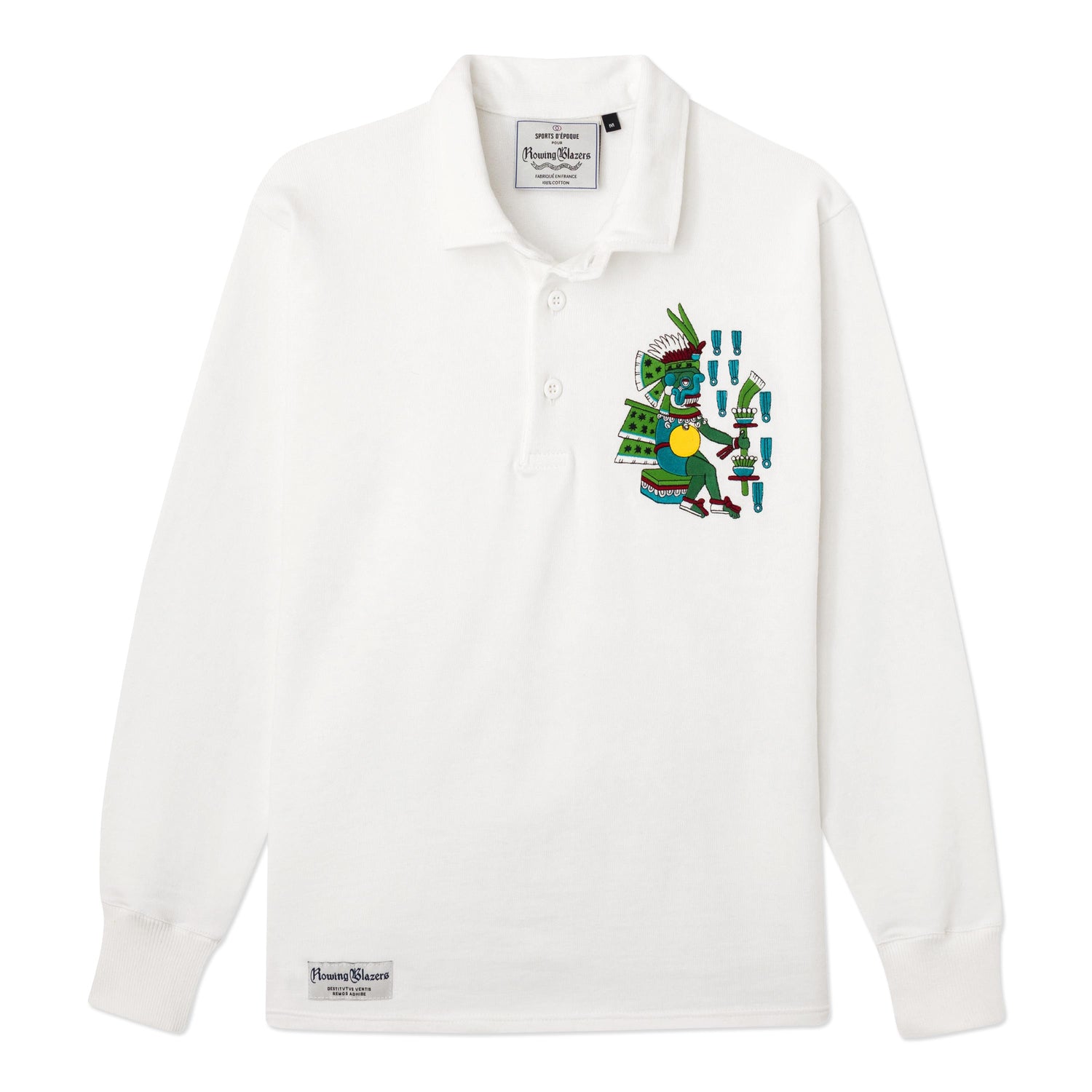 Fall is filled with holidays celebrating dubious moments in the history of the so-called “New World”—holidays like Columbus Day and Thanksgiving. Our Aztec Collection—featuring rugbies and a blazer emblazoned with illustrations from the rich, cryptic, colorful Codex Borgia—is a nod to the people and cultures who were here first; whose culture is all but gone.