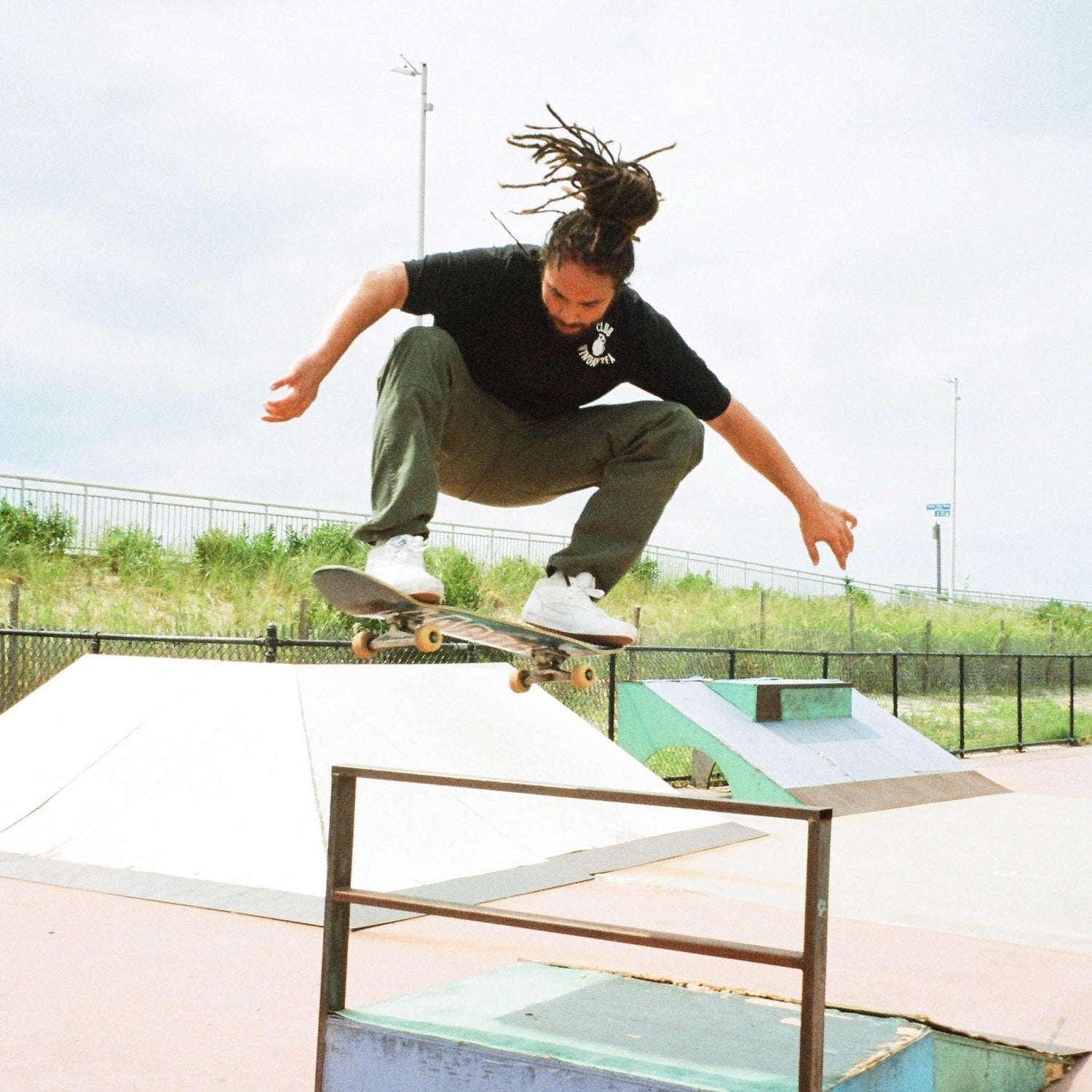 Mac Meda’s original graphics reference a variety of motifs and symbols that embody their place and time. Their most notable design is the mushroom cloud logo, still prominently displayed on stickers around La Jolla and neighboring cities. Graphics also referenced their beloved beach, proudly flaunting “Club Windansea” with a hand grenade printed across the back.