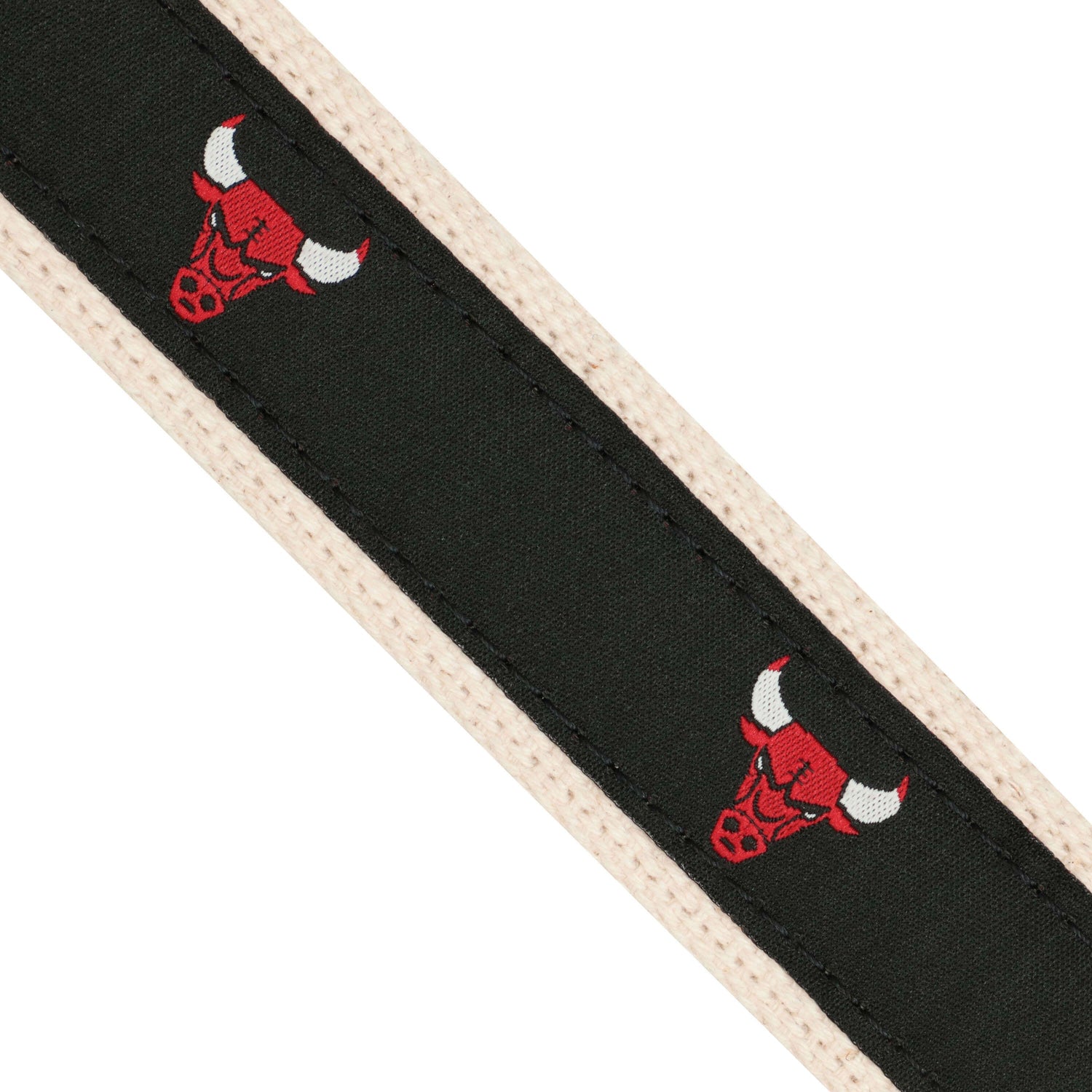 American-made webbed belt with the Chicago Bulls logo and nickel hardware.