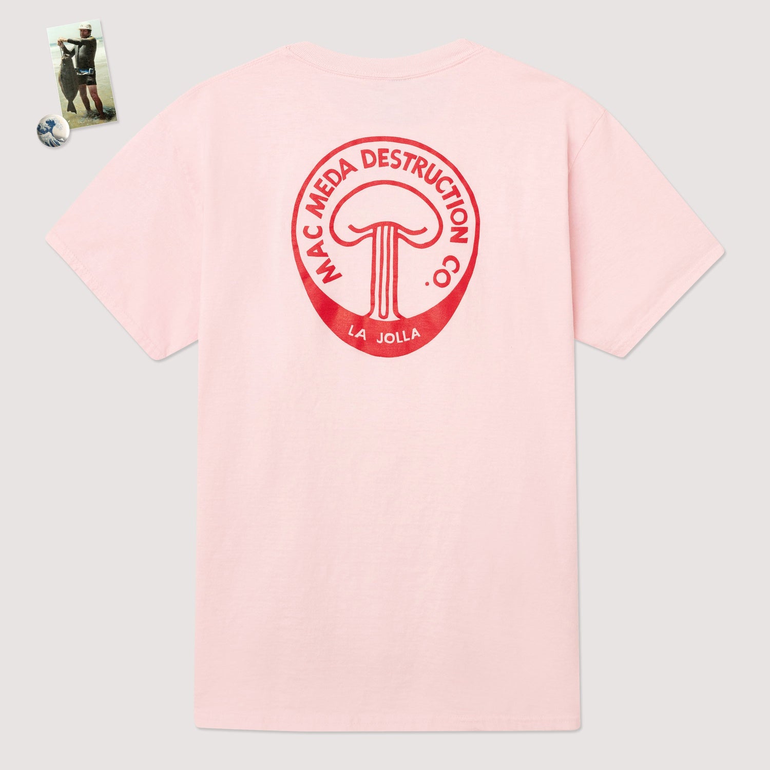 100% cotton tee with Mac Meda Destruction Co. mushroom cloud logo. Props not included.