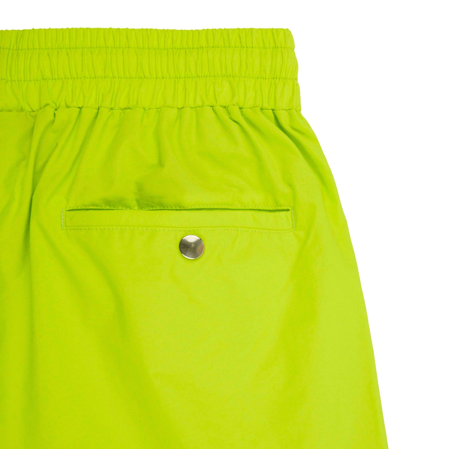 100% Nylon. Side entry pockets; elastic drawstring waistband. Made in Portugal.