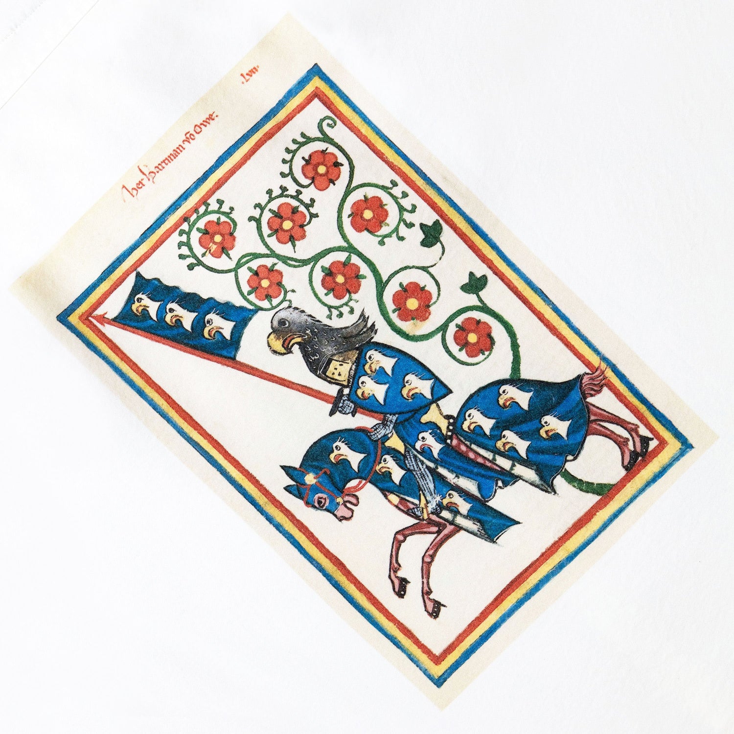 Our Medieval tees and oxfords are inspired by The Codex Manesse, an illuminated manuscript of medieval poetry written and illustrated between the mid 12th and early 14th century. The illustrations are a reminder of the timeless nature of life’s pleasures: wearing your allegiances; the joy of recreation and leisure; forbidden love and the rituals of courtship.