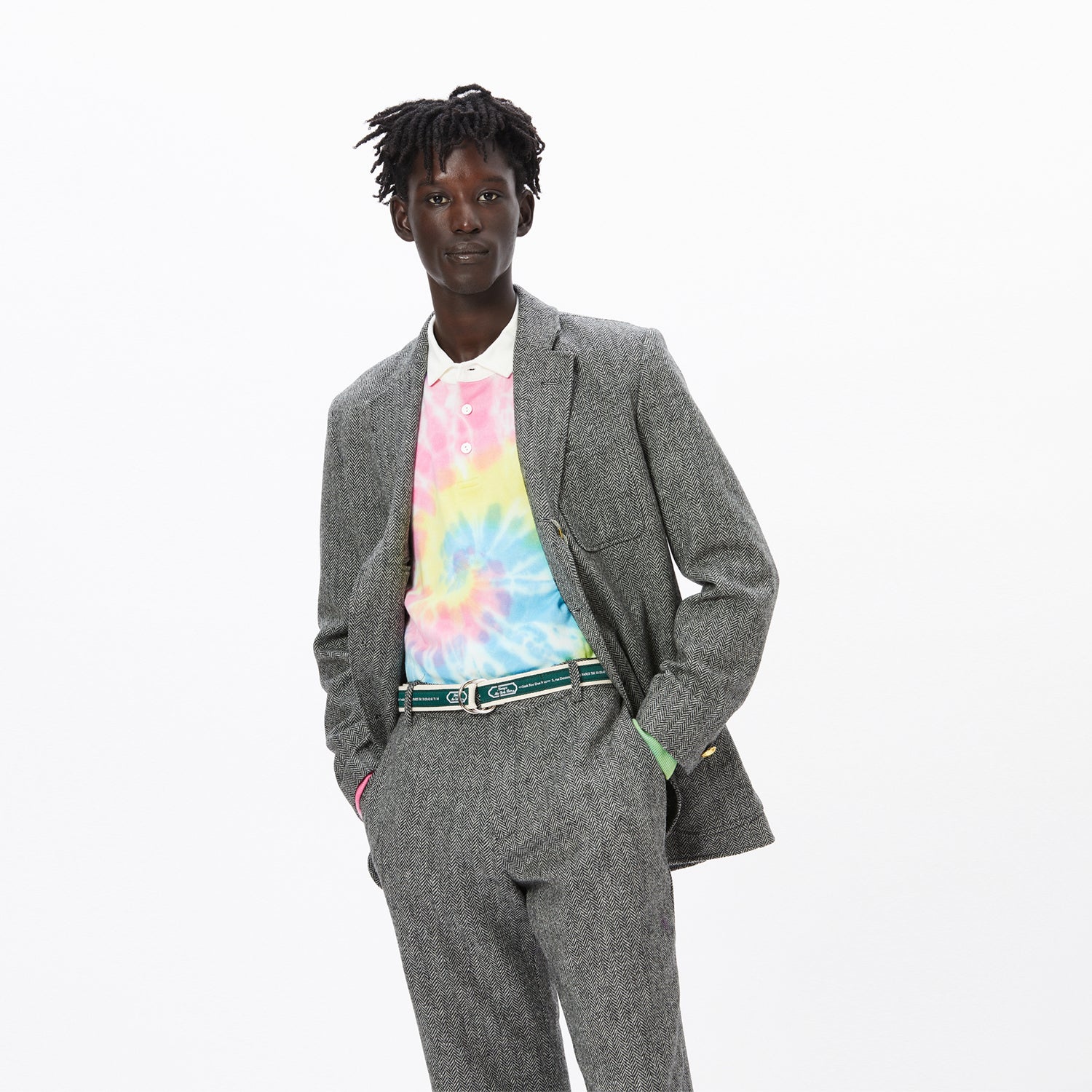 "I started Rowing Blazers four years ago to inject a sense of fun and humor into the classics. Since then, we've become known for our irreverence, use of color, attention to detail and obsessive dedication to quality, as well as our unexpected collaborations and cult following. This season, with that sense of fun and humor in mind, we asked Pete Davidson and Ziwe Fumudoh to be the face of our collection. We love them. The collection leans into color and texture, with made-to-order men's and women's suit separates in brightly colored corduroy and the brand's signature gun check and patchwork tweed; American-made cotton duck travel jackets with corduroy collars; sherpa jockey fleeces in new colorways as well as the brand's trademark 'croquet stripe' and navy-red zig-zag pattern; rugby shirts in bright stripes as well as tie-dye; playing card knitwear; sweats, tees and accessories; as well as a range of '80s inspired sweaters made in collaboration with old-school English brand Gyles & George, founded by former member of British parliament Gyles Brandreth. I think sometimes people hear the word 'classics' and they think 'stuffy.' They hear 'preppy' and they think of something elitist and cringeworthy. These concepts have been hijacked and given a bad name. They're supposed to be about bright colors and beautiful fabrics, but more importantly: having fun, being yourself, and flipping the bird to anyone who takes themselves too seriously." - Jack Carlson