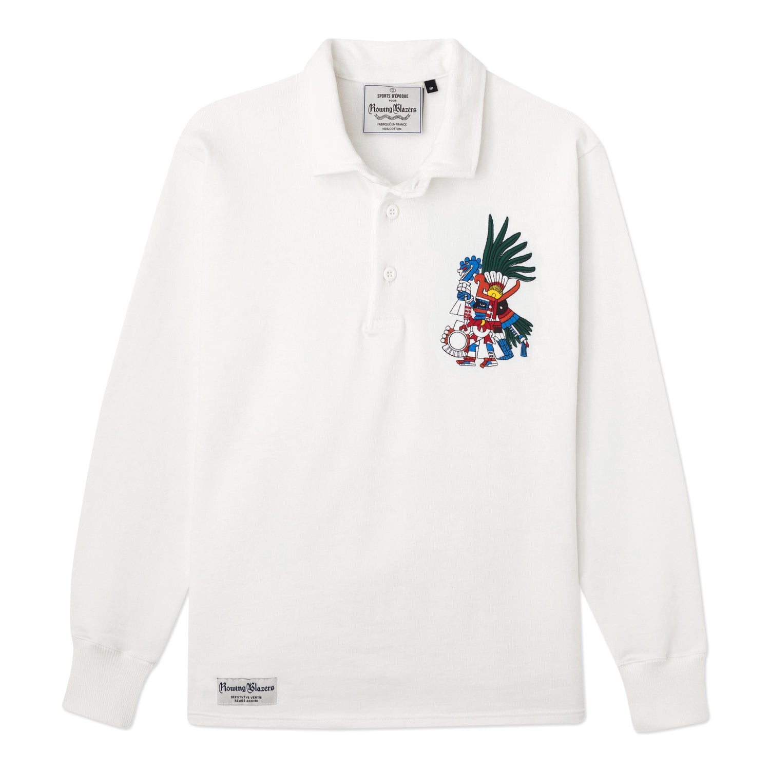Super heavyweight (400g / 14 oz.) rugby jersey with Huitzilopochtli embroidery. Handmade in Europe. 100% cotton, knitted in the traditional 12 gauge style. Stunning material and craftsmanship. Feels incredible.