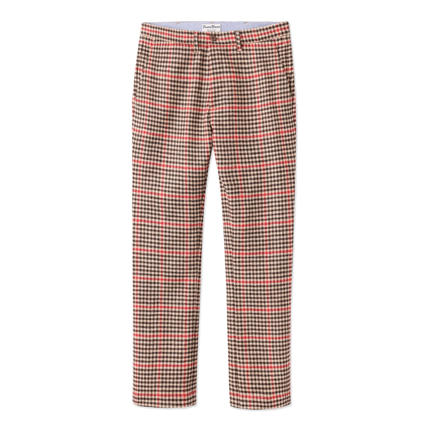 Old school mid-rise. Hand-tailored trousers in custom-woven rough-surface Gun Club check.