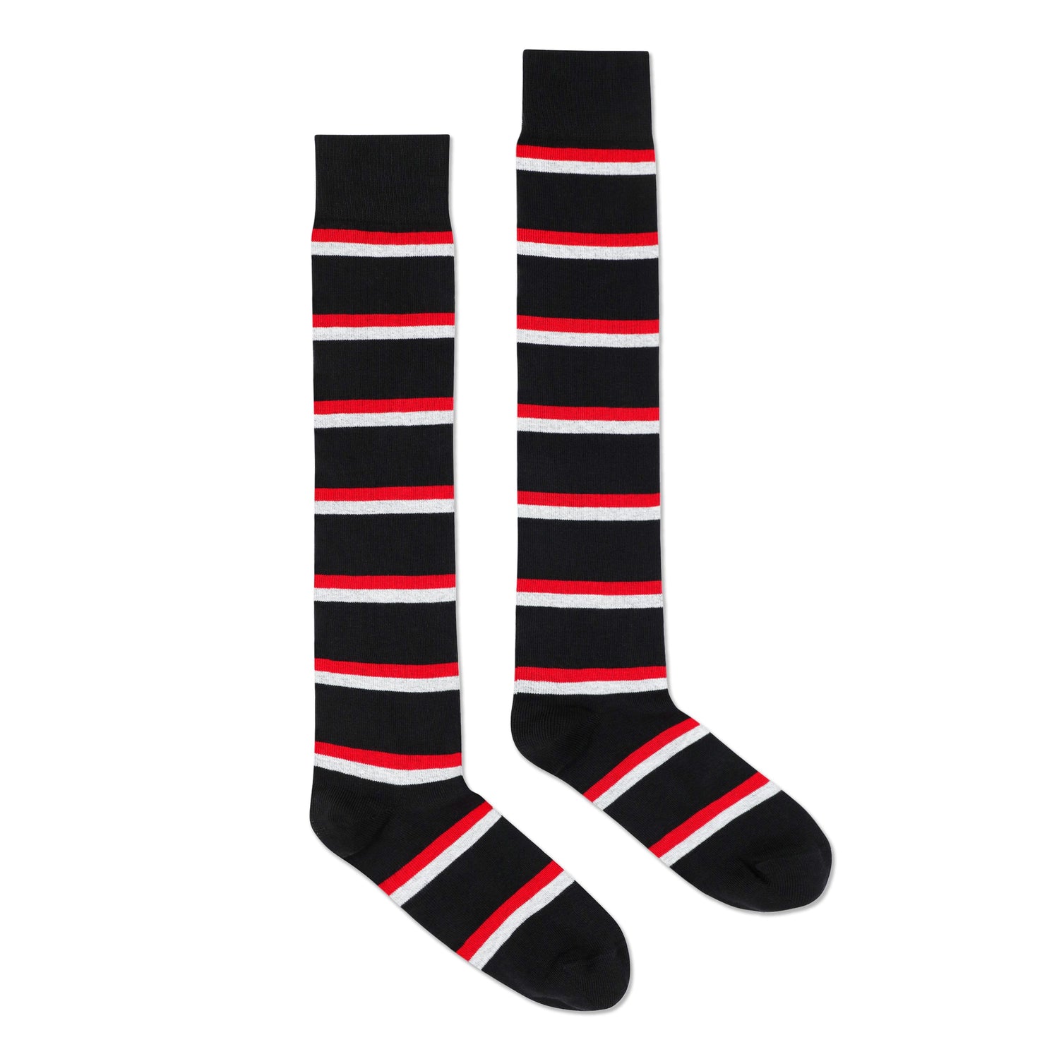Over-The-Knee Black, Red, and White Blazer Stripe Socks