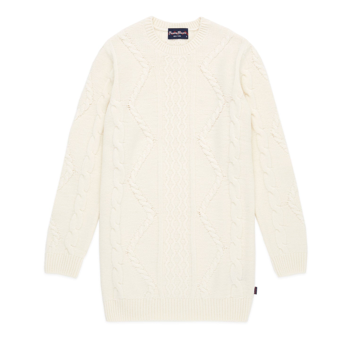 Extra-soft, lambswool sweater dress featuring cable knit zig zag pattern. Women's sizing.